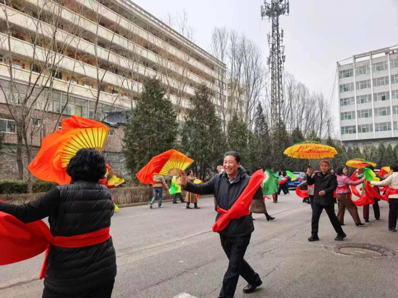 下午16:00,新校区体育场离退休活动室前锣鼓悠扬、暖意融融,老同志们手持彩扇彩绸,伴随着欢快的节奏,迈着矫健轻盈的步伐,扭出欢快的舞姿、跳出心中的喜悦。活动不仅锻炼身体、愉悦心情,更展现了老同志们的活力与风采,将传统民俗的健身价值展现得淋漓尽致。大家相互配合、彼此呼应,欢声笑语此起彼伏,热闹的场景不仅传递着节日的喜庆,更让老同志们在互动中感受到了集体的温暖,促进了身心健康发展。