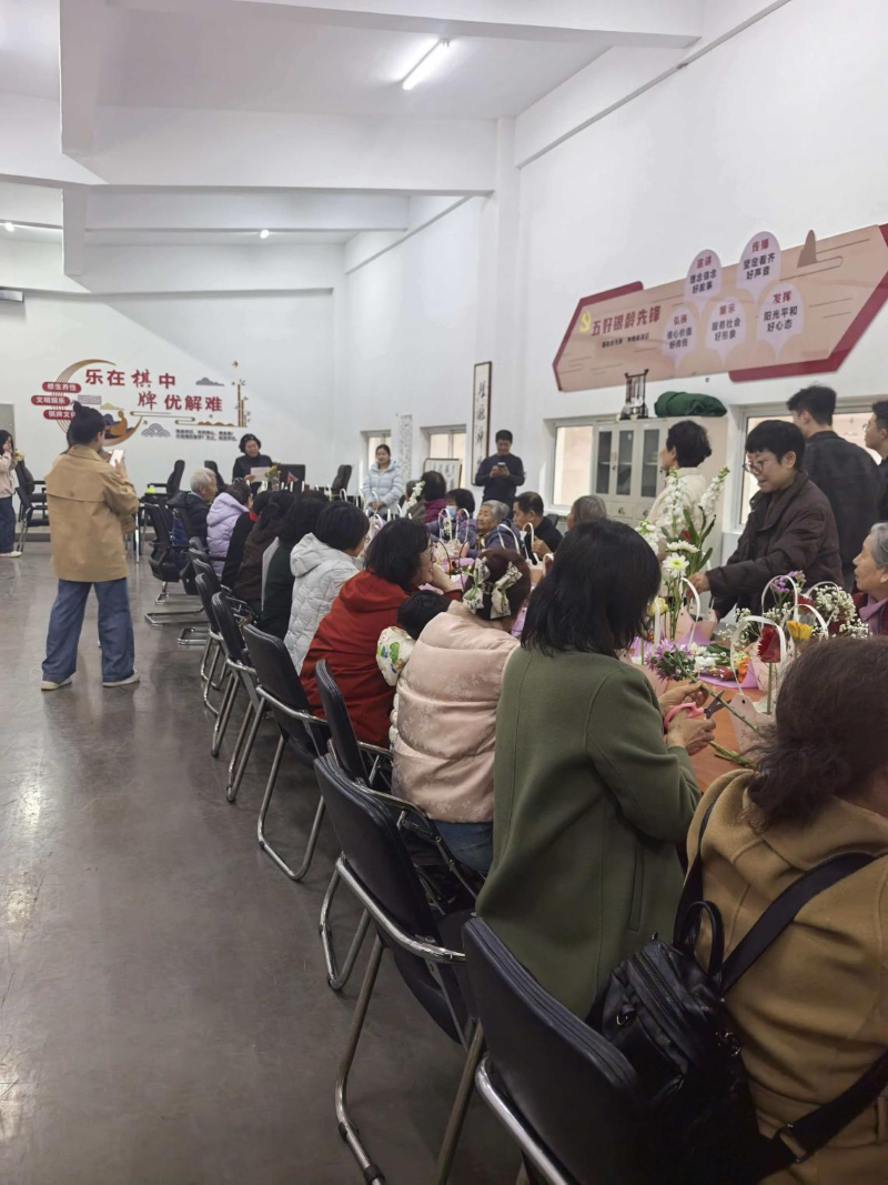同日下午,扭秧歌和插花活动也如期开展。插花活动中,老同志们兴致盎然,精心挑选花材、巧妙构思搭配,创作出各具特色的花艺作品,或清新淡雅、或富丽堂皇,展现了他们对生活的热爱与审美情趣。现场花香四溢,欢声笑语不断,老同志们在互动交流中感受手工艺术的乐趣,进一步丰富了节日体验。